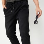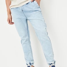 Elevate your casual wardrobe with these carrot-fit denim joggers. Designed with four pockets for all your essentials, they feature an elasticated waist with a drawstring for a customizable fit.