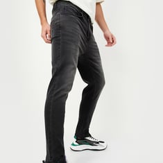 Jazz up your denim wardrobe with these carrot-fit jeans featuring a washed surface, belt loop waist, and 5 pockets. They offer a modern and stylish silhouette that's perfect for versatile styling.