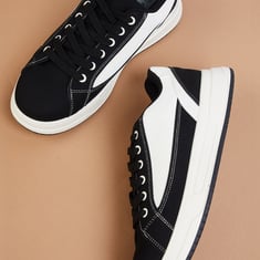 Up your shoe game with this pair of sneakers. It features a colour block upper with overlays, round toe, and lace-up closure. The padded collar, cushioned insole, and treaded outsole combine comfort and support.