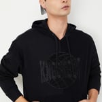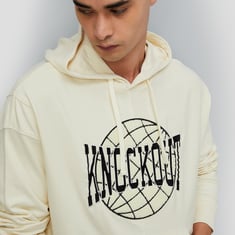 Stay stylish and warm with this oversized sweatshirt. Featuring a cosy hooded neck for added warmth, it showcases intricate embroidery on the front, full sleeves, a kangaroo pocket, and a ribbed hem for a snug fit.
