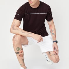 Put on a fresh look at the gym with this active t-shirt. It comes with a solid surface, crew neckline, and half sleeves. It can be teamed with a pair of shorts and lace-up shoes.