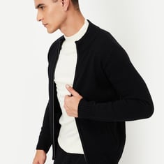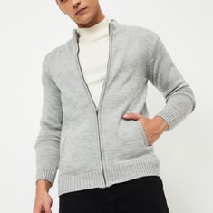 Zip up in comfort and style with this knit cardigan. Featuring a mock collar for a stylish, snug fit, it is perfect for layering on cooler days. The ribbed trim adds a textured finish, while the zip-front closure offers easy wear and a contemporary touch. The waist pockets add to the convenience.