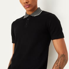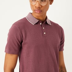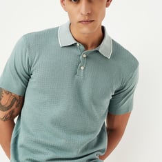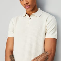 Level up your street style with this effortlessly cool T-shirt. With its knit design, striped polo collar, ribbed hem, and half sleeves, it's the perfect combination of comfort and style for the season ahead.