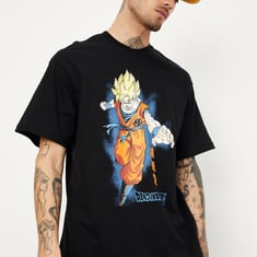 Add some flair to your casual wardrobe with this T-shirt in an oversized fit profile. It has a crew neck, short sleeves, and a Dragon Ball Z-themed graphic print on the front. A pair of jeans and sneakers with this tee gets you ready for the weekend in style.