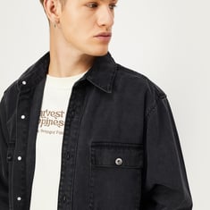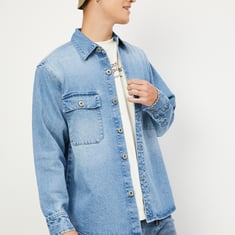 Embrace the laid-back style with this denim shirt. It has a spread collar, full sleeves with buttoned cuffs, and double-flap pockets. The washed design adds a touch of vintage charm. The oversized profile delivers a stylish, relaxed vibe.