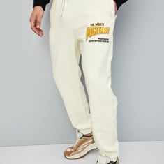 Get ready for the gym with these printed joggers, equipped with an elasticated waistband featuring a drawstring for a customized fit. They also include two side pockets and a patch pocket at the back, ensuring convenience and functionality during your workout sessions.