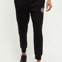 This pair of track pants come with a patch print on the thigh and are enhanced by an elasticated drawstring waist. The slim fit provides ease of movement while running or working out.