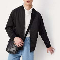 Get cosy in style with this bomber jacket featuring full sleeves, a baseball collar, insert pockets, ribbed cuffs, and zip-through closure. Pair it up with a printed tee and trousers to strike a suave appeal.