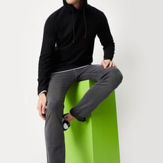 A quintessential wardrobe favourite, this hoodie is rendered in a solid tone. It features a hooded neck and long sleeves. Pair this hoodie with jeans and sneakers to ace the street style.