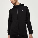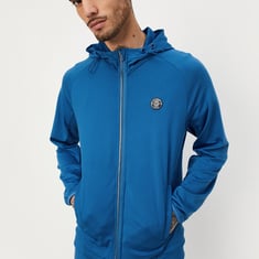 Upgrade your sports collection with this solid sweatshirt which has a hood, full zip closure, full sleeves, and pockets. Team it with a tee and track pants for a dapper look.
