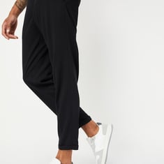 Elevate your look with this pair of trousers crafted in a carrot-fit silhouette. It features a flat front, belt loop waist, insert pockets, and buttoned back welt pockets.