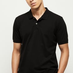 Give a trendy change in your casual wardrobe with this t-shirt designed with half sleeves, and a polo collar.