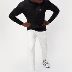 This sweatshirt with a high collar, zip-through, two pockets, and long sleeves. The solid surface adds a versatile style that will complete your casual wardrobe and add to your style factor.