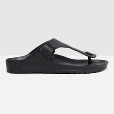 Amp up your wardrobe with this pair of smart sandals. It is detailed with T-strap and comfortable material to ensure your comfort and functionality. Style it up with a T-shirt and shorts, for a relaxed look.