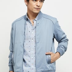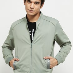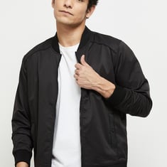 Men Solid Zipped Bomber Jacket
