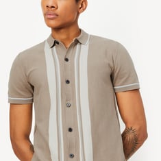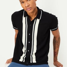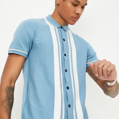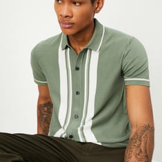 Enhance your weekend wardrobe with this polo t-shirt. It includes a polo collar, half sleeves and a full button placket that completes the utility aspect of the style. Additionally, a unique striped pattern makes it a captivating choice.