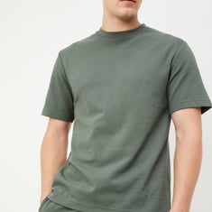 This textured t-shirt is anything but basic. With a classic crew neck and half sleeves, it offers a comfy fit while the textured fabric adds a stylish twist.