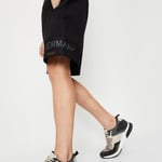 The perfect mix of comfort and sporty, this pair of shorts is updated with a typographic print on one leg. It features a striped ribbed waist with drawstrings, side zip pockets, and a back patch pocket. Team up these shorts with a tee and sneakers for a casual look.