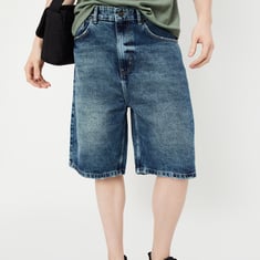 These washed baggy fit shorts feature a button placket, belt loops, and five pockets, offering a relaxed, comfortable fit with plenty of practicality. The faded wash gives them a casual, worn-in vibe.