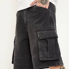 Breezy and casual, this pair of denim shorts is updated with a washed finish. It has a belt loop waist, wide leg profile, 4 pockets, and cargo pockets.