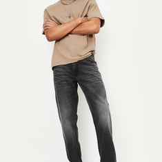 Get that effortlessly cool vibe with these washed straight-fit jeans. Featuring a classic 5-pocket design and a secure button closure, these jeans combine style and functionality.