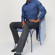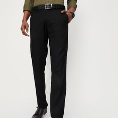 Jazz up the workwear with this pair of slim-fit formal trousers designed with 4 pockets, waist loops, and button closure. For a polished look, pair these trousers with a sweater and lace-up boots.