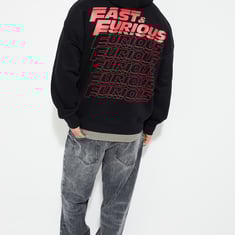 Bring street-style energy to your wardrobe with this Fast & Furious printed sweatshirt. Featuring bold back and chest prints inspired by the iconic franchise, it combines attitude with comfort. Designed with a cosy hood, full sleeves, ribbed trims, and a kangaroo pocket, it’s perfect for casual days and laid-back outings.