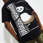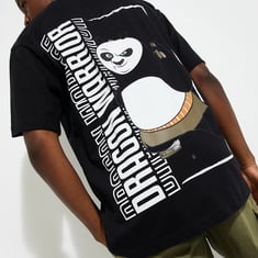 Get ready for an elevated street-style experience. With this Kung Fu Panda printed T-shirt, you'll effortlessly add urban flair to your look. Featuring a crew neck, short sleeves, and an oversized profile for roomy comfort, you'll feel like a martial arts master on the city streets.
