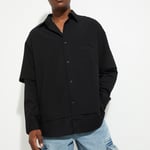 Elevate your street style with this solid-tone shirt, designed for ultimate versatility. With its oversized fit, spread collar, full sleeves, and front button placket, this shirt offers a relaxed yet polished look. The patch pocket adds an edgy detail, perfect for achieving that effortlessly cool urban vibe.