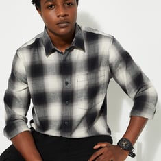 Amp up your style with this shirt that's all about making a statement. Crafted with a checked pattern, it features a spread collar, full sleeves, a patch pocket and a button placket. Perfect for adding an urban edge to your look.