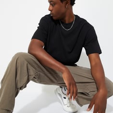 Embrace a relaxed look with this T-shirt, crafted in a solid tone and designed with a relaxed fit for ample comfort. It features a crew neck and half sleeves, perfect for a laid-back and stylish vibe.