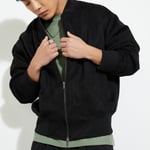 Elevate your outerwear game with this jacket. It features a solid tone design with ribbed trim for a versatile, classic look. The features include a baseball collar, full sleeves, ribbed trim, and waist pockets.
