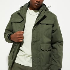 URB_N Men Solid Hooded Utility Jacket