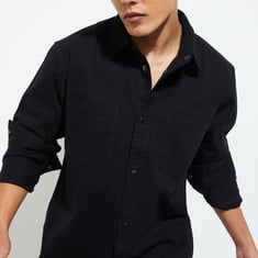 Keep it chill and stylish with this shirt. It features an oversized profile, perfect for layering or wearing solo for a laid-back vibe. This shirt showcases a spread collar, full sleeves with buttoned cuffs, and double patch pockets on the chest.