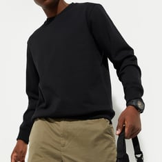 Gear up for winter with this sleek, urban sweatshirt. Featuring a classic crew neck, long sleeves, and a solid design, it exudes minimalist style. The ribbed hem adds a snug fit, making it a perfect blend of comfort and street-ready flair.
