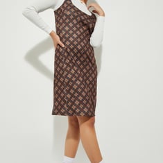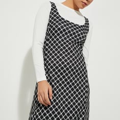 Get ready to slay that effortlessly cool vibe with this checked dress. The pinafore dress features a flattering knee-length profile and a fun cut-out at the back adds a modern twist. The cosy round-neck T-shirt with full sleeves and ribbed trim layered underneath the dress completes the look.