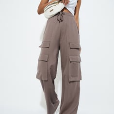 Step into comfort with these track pants featuring a solid surface, drawstring waist, side pockets, and a cargo pockets.