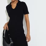 Seen having a ribbed texture, this knit dress features a fitted cut that elegantly contours your body, ending in a playful mini length. The collared neckline and short sleeves add a contemporary touch, making it versatile for casual outings.