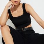 Level up your essentials with this ribbed tank top. Designed with a round neck and sleeveless vibe, its cropped profile gives you that effortlessly cool look.