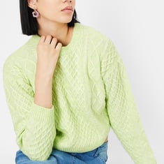 Stay warm this winter with a stylish sweater that features a cable knit pattern, full sleeves, a round neckline, and a ribbed hem. For a comfortable and cosy look, pair this sweater with joggers and lace-up shoes.