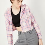 Women Checked Hooded Crop Shirt