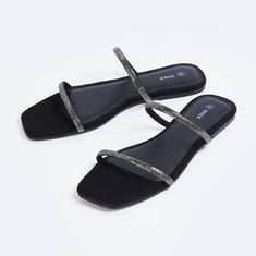 Upgrade your casual footwear collection with this pair of flat sandals. It features an open open-toe construction, embellished straps, cushioned footbed, and a durable outsole.