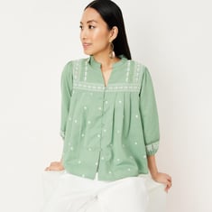Women Embroidered Blouson Sleeve Blouse