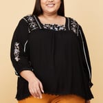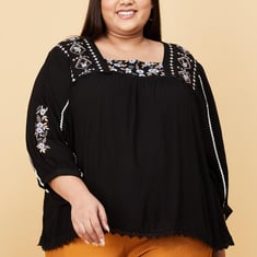Trendy and chic, this top lets you switch up your casual style. It features floral embroidery details, a square neckline, Tailored with a square neck, three-quarter sleeves, and lace trim hem. Style this top with a pair of palazzos and pumps to elevate the outfit.
