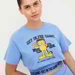 Slay your workout look in this T-shirt crafted in a crop profile. It features a layered design with a Garfield print on the chest, a round neck, and short sleeves. The underlayer features spaghetti straps and a printed elastic hem.