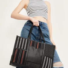 Make a statement with this tote bag adorned with a striking jacquard design on the exterior. Complete with flat straps and a main zip compartment featuring internal pockets, it combines style and functionality seamlessly.