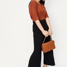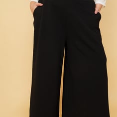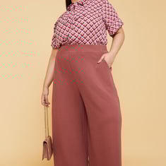 Flaunt your chic style in this pair of trousers. It is designed with a jacquard knit pattern, an elasticated waist, slant pockets, and a wide-leg profile. Team up this pair of trousers with a top and loafers to complete the look.