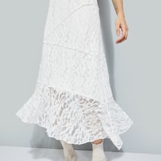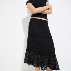 Add a touch of elegance to your wardrobe with this lace A-line midi skirt, designed with an elasticated waist for a comfortable and flattering fit.