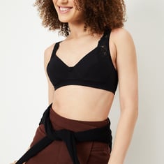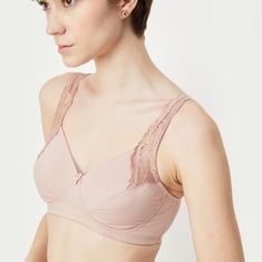 Experience comfort and elegance with this bra. The lace straps add a graceful touch. The padded cups and back closure ensure all-day support.