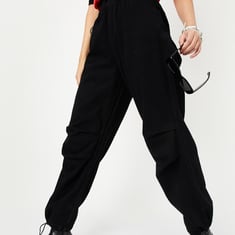 Upgrade your denim game with this pair of jeans rendered in a solid tone. It features a drawcord elasticated waist, side pockets, and drawcords at the hem to create the parachute fit. This pair of jeans looks best with a tee and boots.